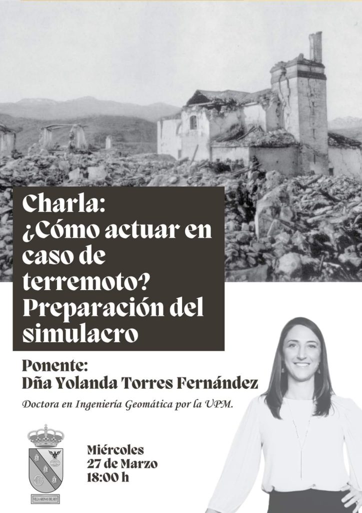 El Ayuntamiento de Arenas del Rey anuncia la realización de una charla-taller esencial para la zona, enfocada en la preparación y respuesta ante terremotos. La sesión será impartida por la experta local y Doctora en Ingeniería Geomática Dª Yolanda Torres, y se llevará a cabo el 27 de marzo a las 18:00 horas en las instalaciones del Ayuntamiento.