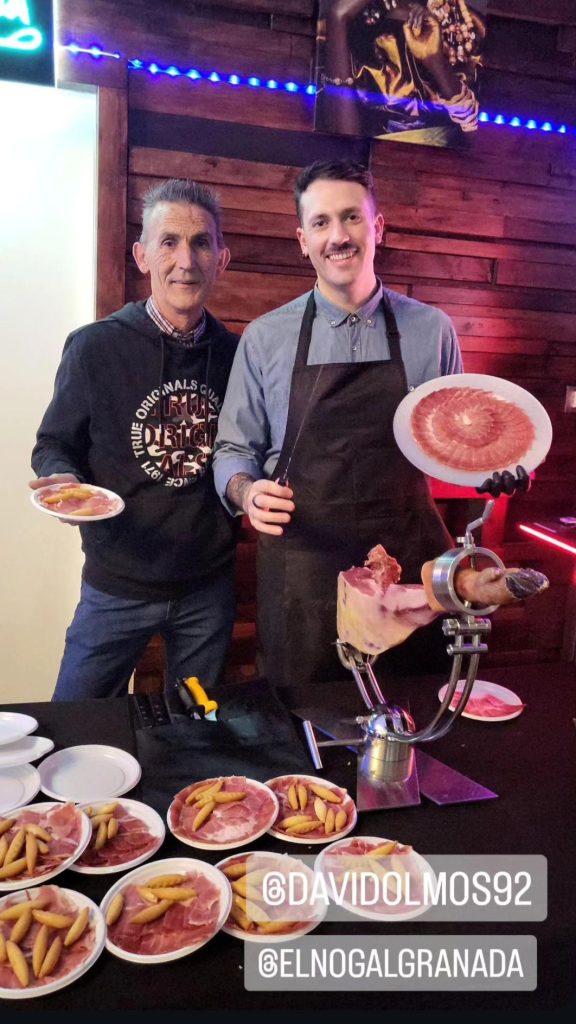 Uno de los momentos más destacados de la noche fue la participación de David Olmos, un cortador de jamón profesional y oriundo de Játar, que actualmente trabaja en la tienda Viandas de Granada. Olmos, con su destreza aportó un toque especial a la inauguración.